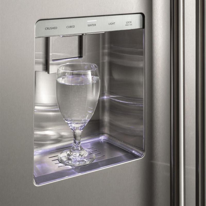 Light columns in the freezer and fresh food compartments extend the full length of the interior and LED lighting located inside the vegetable and climate-control drawers illuminate contents without compromising space.