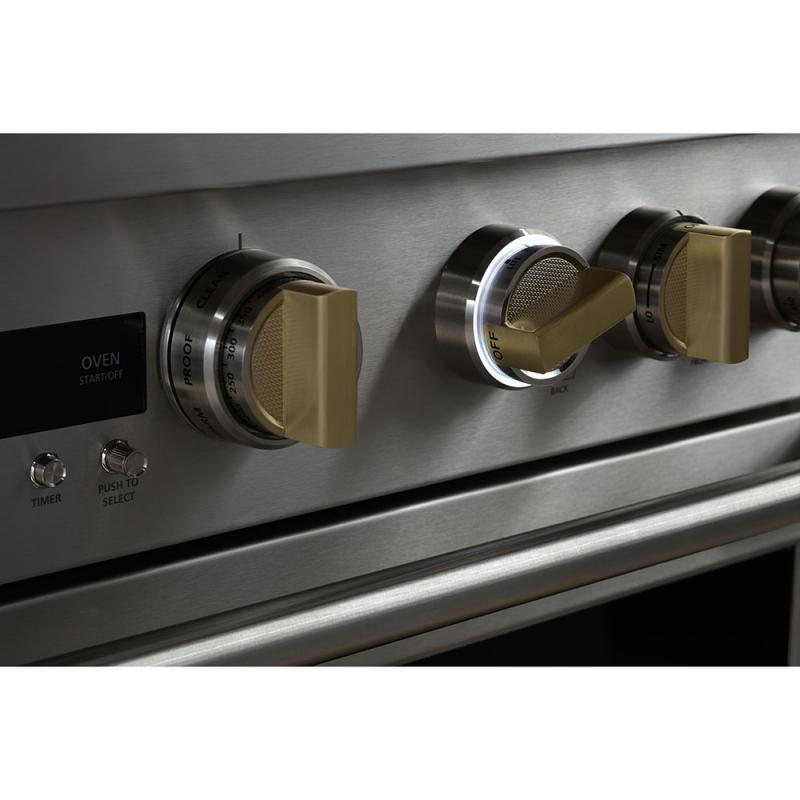 Delivering exceptional cooking flexibility, the two 23,000-BTU multi-ring brass burners and dual-stack burners offer a range of heat settings, from gentle simmer to intense flame