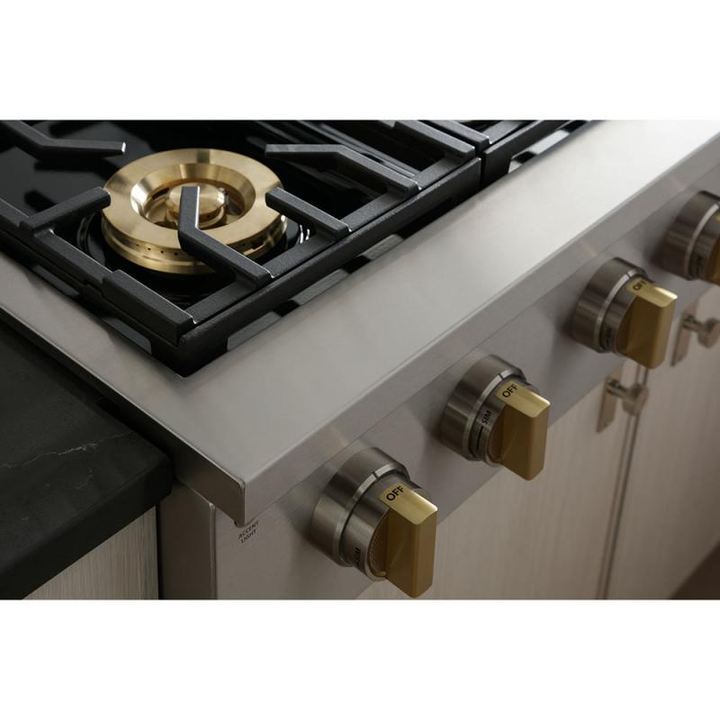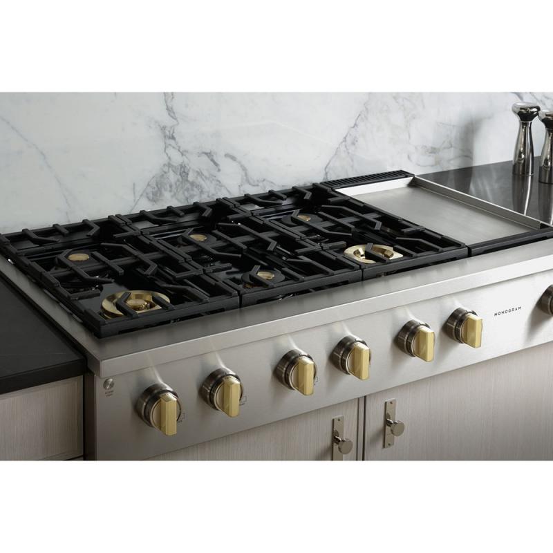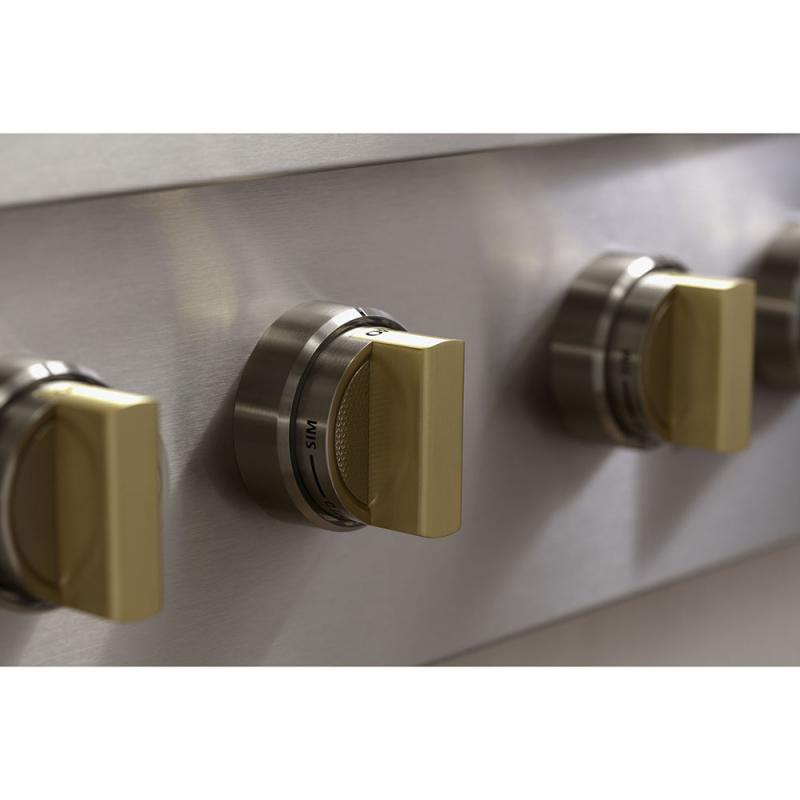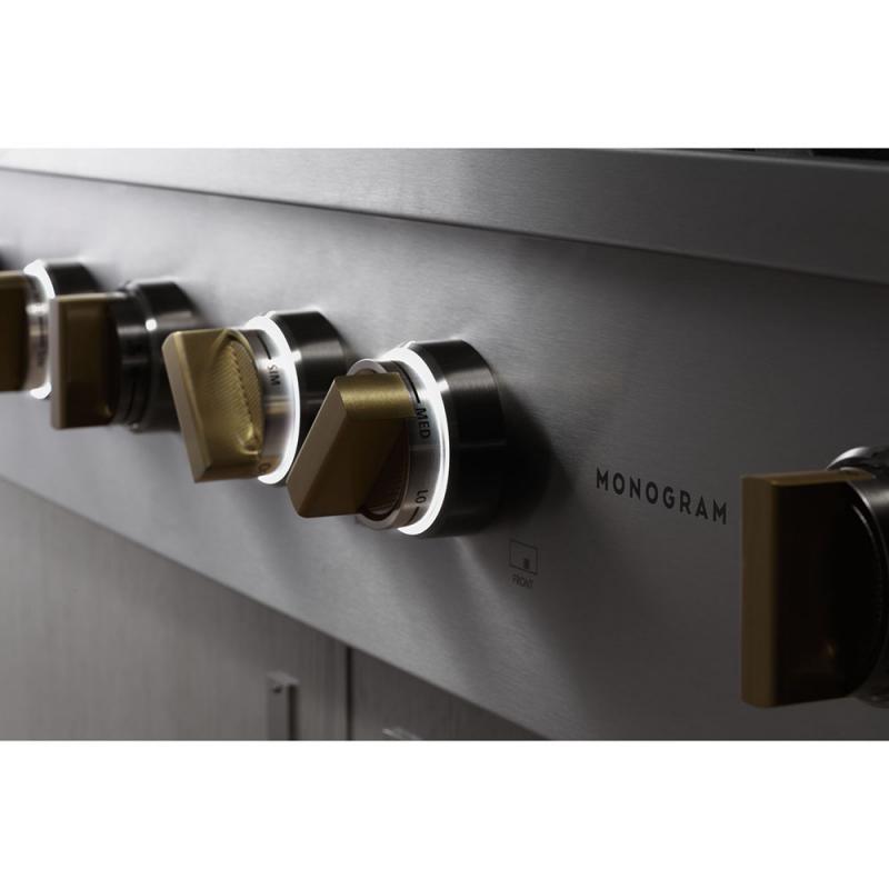 With an unmatched attention to detail, all knobs on the new Monogram Pro ranges and range tops come with solid brass accents