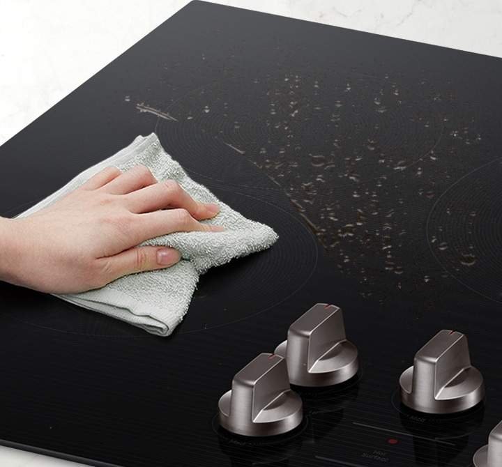 The smooth glass ceramic surface and dishwasher-safe handles make cleaning easy.