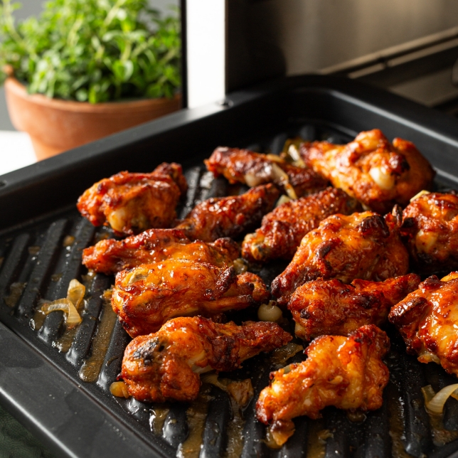 The Air Fry Style option is available in the auto menu program for high-temperature cooking. The grill tray grills the top and bottom of food simultaneously without flipping, while removing any excess oil. Less oil and high-temperature cooking makes fried and grilled foods as healthy as air frying.