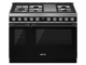 48" SMEG Cooker Portofino Freestanding Professional Dual Fuel Range with 5 Burners in Black - CPF48UGMBL