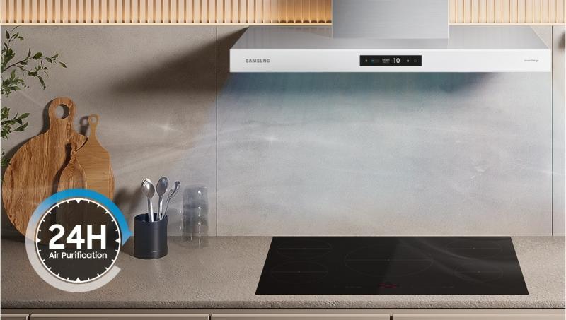 Ensure a more comfortable cooking environment. The powerful ventilation system gets rid of heat, steam, fumes and odors. You can adjust the power across 4 settings, up to an amazing 630 CFM suction capacity*. If the air quality is poor, its Smart Mode will also automatically adjust the power.
