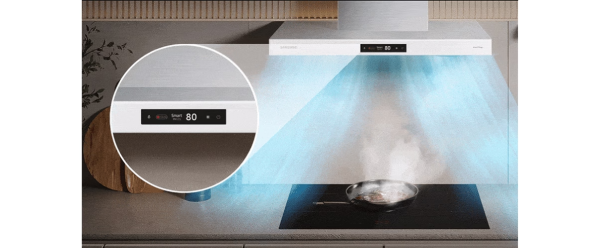 Smart mode* adjusts the hood’s ventilation power to suit the air pollution level. If the air quality is poor it works in High mode to refresh the air rapidly. When it improves it reduces its speed.