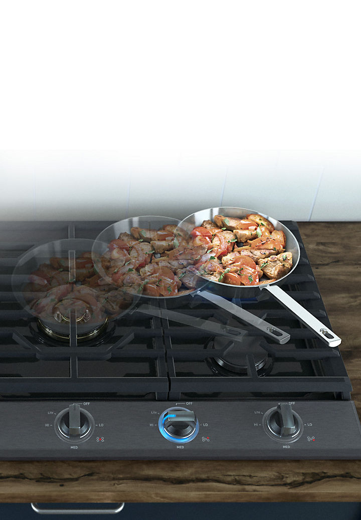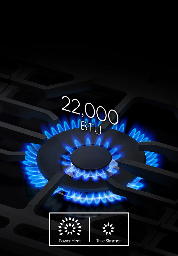 A high power, 22 K Dual Burner provides powerful heat and precise control quickly going from a high heat to a true simmer for intense and even cooking, or turn it right up to boil water in a flash and cook food faster.The Power Boost function can reduce cooking times with an extra boost of heat.