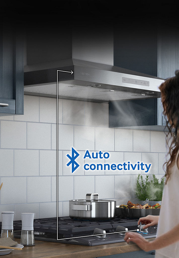 Automatically syncs the fan and the lights with the burners through Bluetooth. Auto Connectivity* aligns the hood and cooktop's status so you can control the hood using the one-touch control of the cooktop, instantly turning them both ‘On' or ‘Off', for the ultimate in cooking convenience.