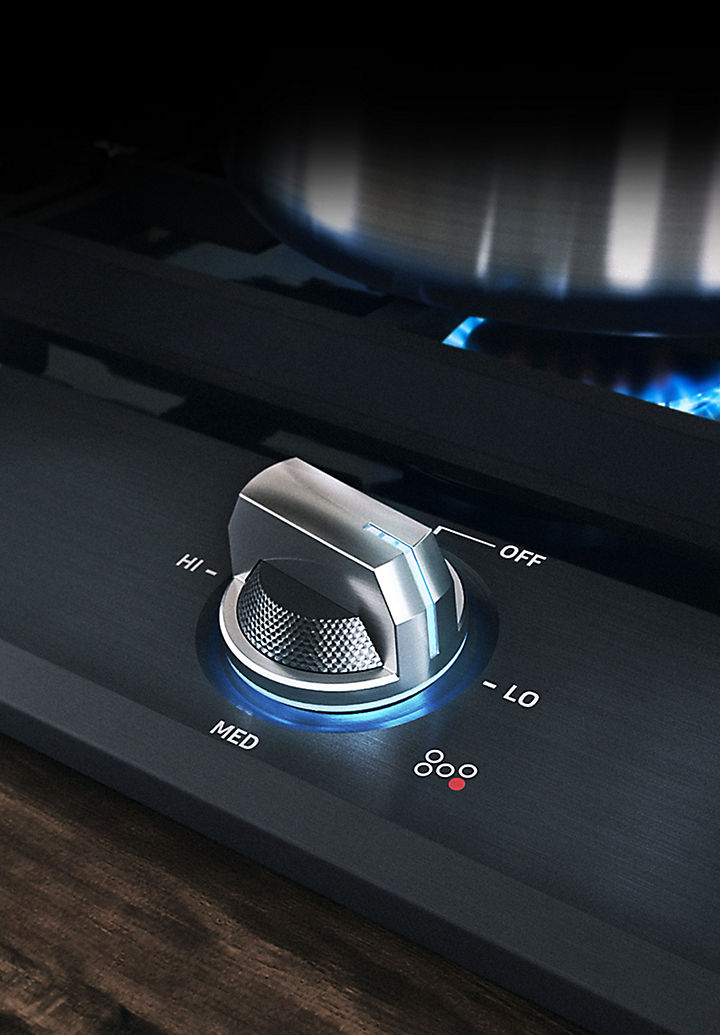 With the brilliant and intuitive Illuminated Knob you can easily check whether you have left the cooktop on even from a distance. Large, ergonomic metallic knobs also enable simple and precise temperature control.
