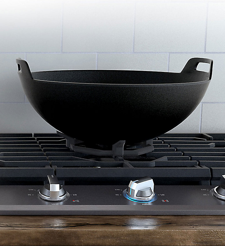 A specially designed Wok Grate lets you cook more efficiently and safely. Its circular design fits snugly around the burner, so your wok or large pans are kept stable and heat is quickly and evenly distributed.