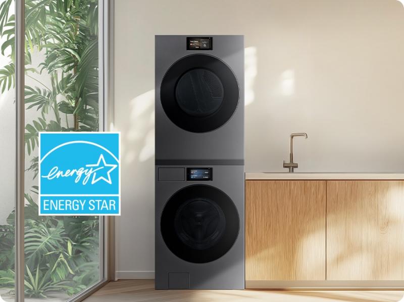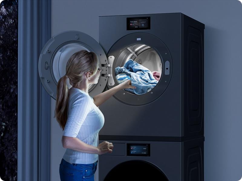Enhance your home with a sleek, premium look. The brand-new design is simplified and seamless, with a large 7” LCD display. Its elegant flat front and back fit harmoniously with other appliances and furniture. And you can install a washer and dryer together either horizontally or vertically*.3