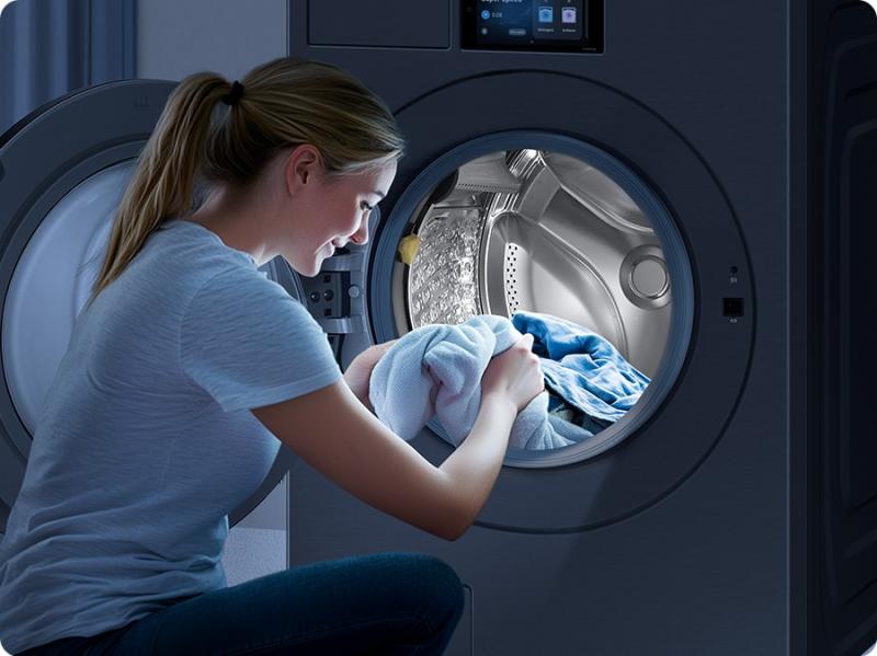 Control the washing machine really easily with your voice. Using Samsung Bixby*, you can simply say what you what you want it to do and it will do it. So you can select cycle options, control settings and monitor its progress. And, if you cannot read the screen, it can provide spoken feedback.3