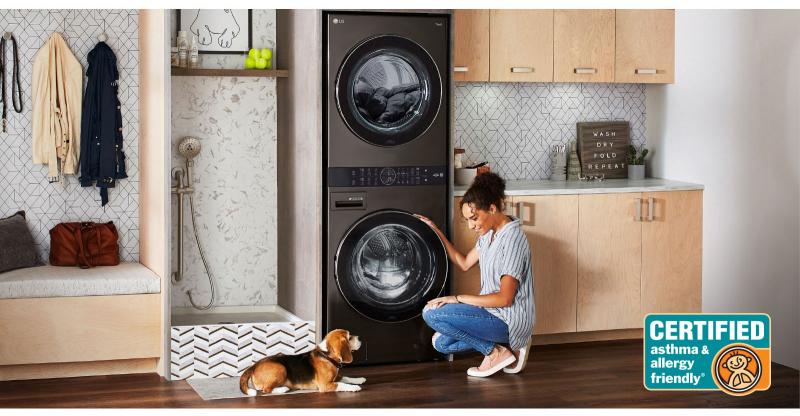 The LG WashTower can also handle common household allergens that attach to your clothing. The Allergiene wash cycle uses steam to remove up to 95% of common allergens such as dust, pet dander and pollen from your wardrobe.