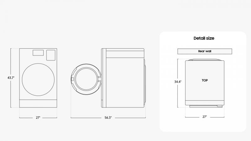* Compared to the Samsung [WD53DBA900HZA1] model. ** Based on a king-size comforter that is 107.9" wide and 93.7" long. *** Compared to the Samsung [WF53BB8900ATUS] model. **** Wash: Based on using a Super Speed cycle with an 10lb DOE (cotton 50% + polyester 50%) load. Individual results may vary based on actual load contents. ***** Dry: Based on using a Super Speed cycle with an 10lb DOE (cotton 50% + polyester 50%) load with a Residual Moisture Content (RMC) of 48% after a wash cycle. Individual results may vary based on actual load contents.