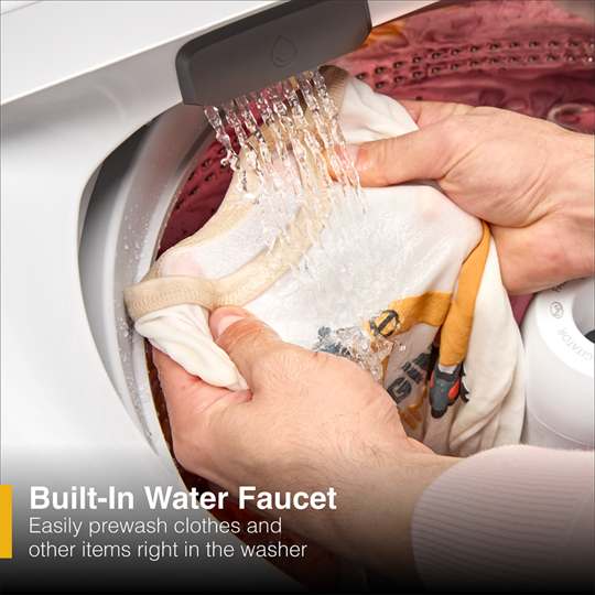 Easily prewash clothes and other items right in the washer with a conveniently located faucet that gives you easy access to an instant water stream to remove loose soils.