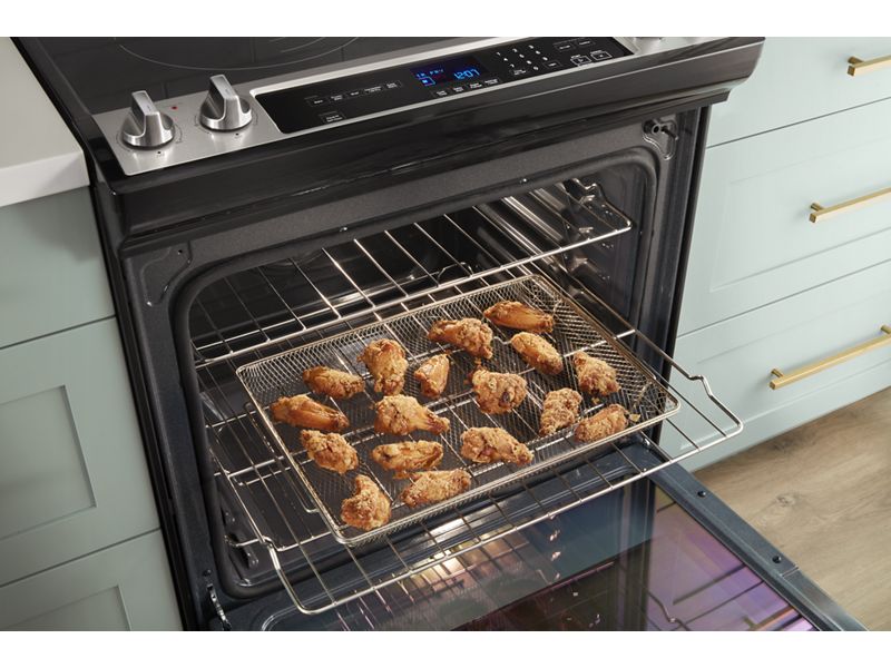 Skip preheating and air fry chicken nuggets, wings, fries and more to get crispy results right in your oven. The Air Fry Mode circulates hot air around the air fry basket to cook fried food in a healthy way, with less oil than traditional frying.