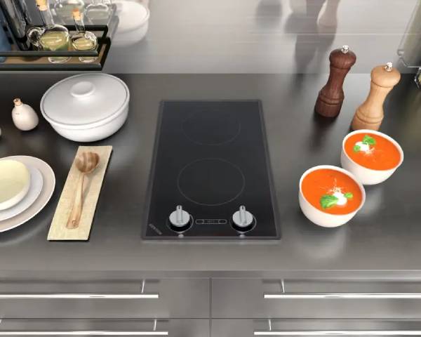 Featuring two heating elements, providing ample space for various cooking needs. Safety is paramount with integrated features such as heat surface protection, an “On” indicator light for each burner, and an additional hot burner indicator light. The heat-limiting cooking surface prevents the burners from exceeding safe temperatures, while the intuitive push-to-turn knob control allows for precise temperature adjustments and prevents accidental activation. Available in 120V, 208V, or 240V, this cooktop caters to a wide range of kitchen needs, providing versatile functionality and confidence for every culinary enthusiast.