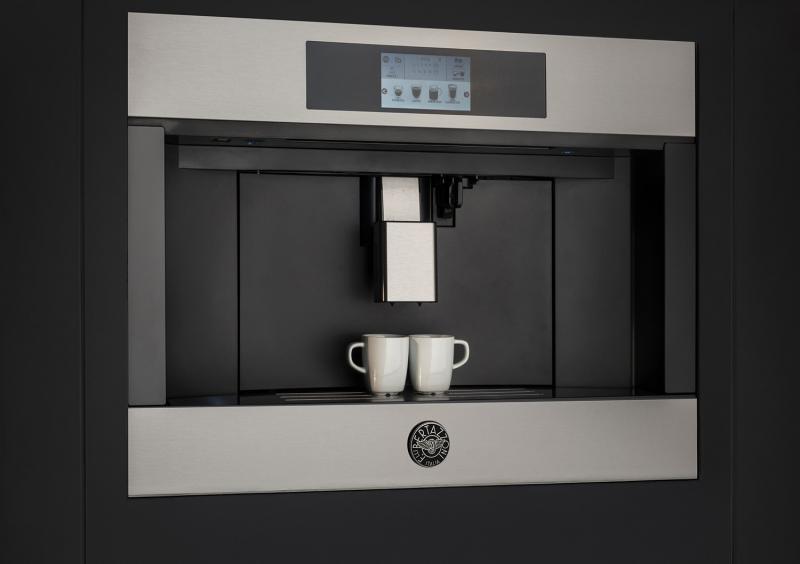 Bertazzoni's built-in coffee maker features an integrated cup-warming function that preheats cups to preserve aroma and taste, keeping coffee at its optimal temperature for an enhanced experience.