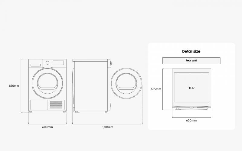 | Option List | Wrinkle Prevent, Damp Alert, Smart Control, Drum Light, Child Lock, Sound(on/off), Wifi, Time |