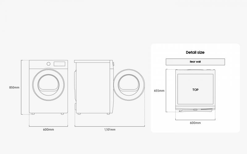 | Option List | Time, Wrinkle Prevent, Damp Alert, Smart Control, Drum Light, Adjust Time Up, Adjust Time Down, Vent Blockage Test, Child Lock, Sound(on/off), Wifi |