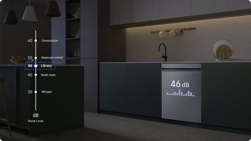 Avoid creating a disturbance at home with an ultra-quiet dishwasher. A frictionless BLDC motor reduces noise significantly and its insulated stainless steel tub absorbs much of the sound and vibration. At just 46 decibels* it is almost as quiet as a library, so it won’t disturb your daily life.5