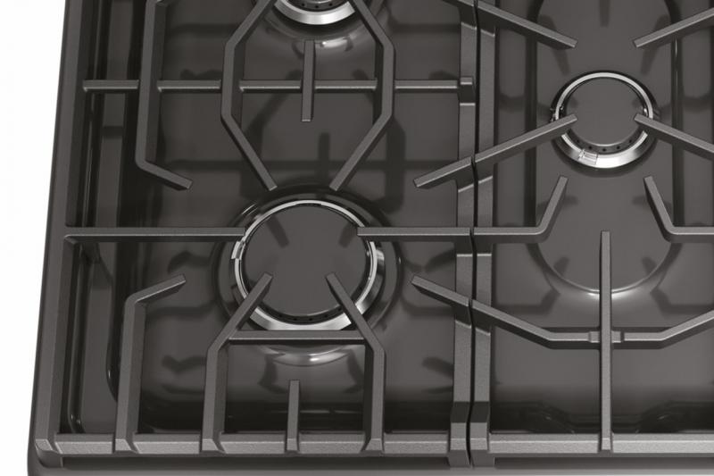 Moving heavy pots and pans across the cooktop is easier with continuous edge-to-edge grates.