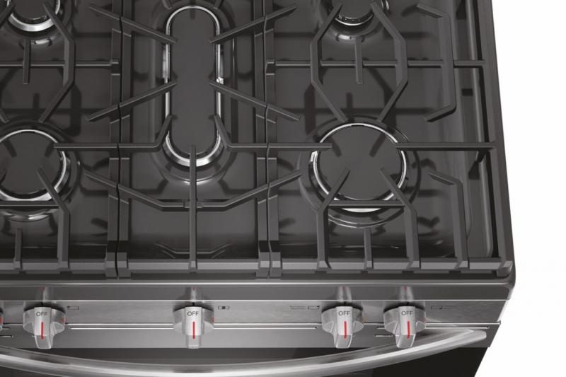 Moving heavy pots and pans across the cooktop is easier with continuous edge-to-edge grates.