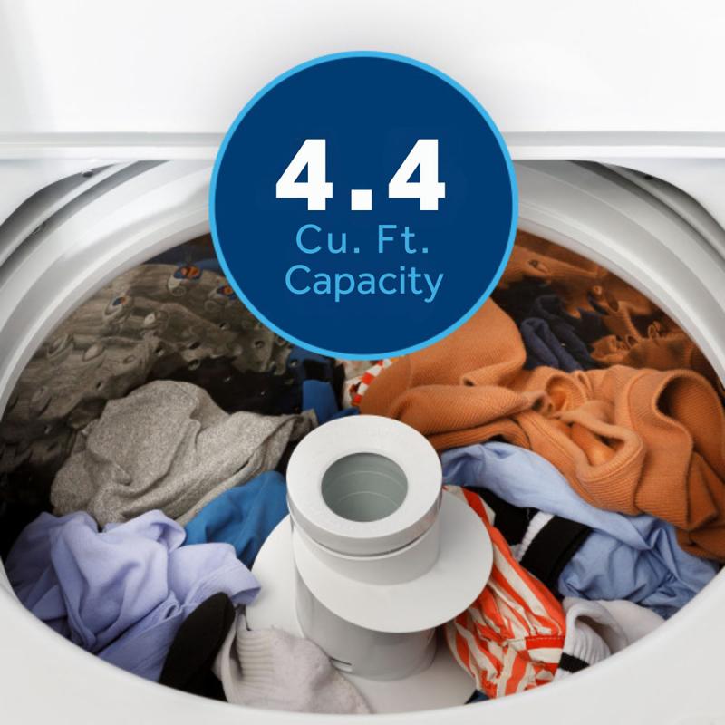 From soccer uniforms to king-size comforters, this 4.4 cu. ft. washer is designed to keep up with real life. Its extra-large capacity means fewer loads, less waiting, and more time for what matters.