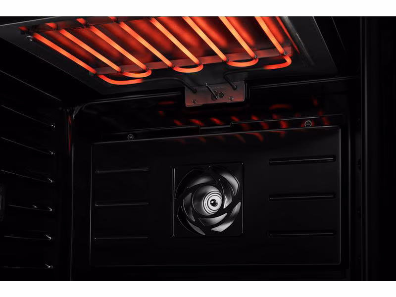 Steady heat generated by a 3,200W element is circulated by whirling metal blades, weaving around every flat tine. Wield your cooking prowess from marbled meats to succulent roasts.