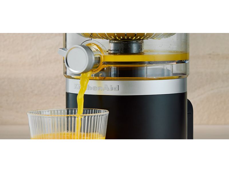 The power to make. The power to move. Create anywhere using the KitchenAid Go™ Cordless Citrus Juicer, with 16 oz reservior bowl. Powered by a rechargeable 12v MAX removable battery*, the new cordless citrus juicer delivers up to 3 hours of continuous run time**. With an Auto-Reversing Reamer and Precision Pour spout, this juicer lets you add fresh citrus to breakfast, recipes, cocktails, mocktails and more. Bring a fresh take to taking fresh squeezed juice anywhere. *Sold separately. **Maximum initial battery voltage (measured without a workload) is 12 volts. Nominal voltage is 10.8 volts. Actual run time will vary based on recipe used. Battery life impacted by factors such as battery age and use.