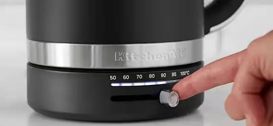 Elevate your breakfast possibilities with this KitchenAid® 1.7 Liter Electric Kettle, great for single or multiple servings of tea, coffee, cereals and so much more. This kettle features automatic heating technology, which takes care of boiling your water and automatically shuts off after boiling is complete. It also features variable temperature control, to quickly and quietly boil to the temperature you need. The detachable swivel base allows you to move freely with your kettle to where it is most convenient for you.