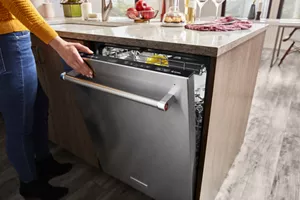 provides quiet cleaning without compromising performance, so there’s no need to wait to run a wash cycle while entertaining and enjoying meals, even in open concept kitchens.