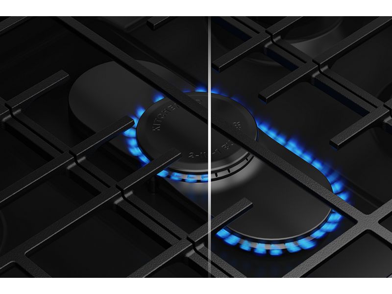 offers an unparalleled and versatile cooking experience. This innovative design features a stacked central burner, perfect for adapting to any cookware and recipe. Seamlessly transition from the oval burner, ideal for griddle cooking, to the round center burner, capable of handling your largest pots and pans.