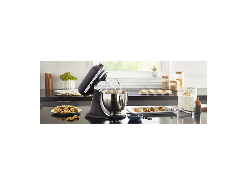 Whether you need 9 dozen* of your signature chocolate chips cookies or shredded chicken for Taco Tuesday with friends and family, the KitchenAid® Artisan® Series 5 Quart Tilt-Head Stand Mixer has the capacity for every occasion. This durable tilt-head stand mixer was built to last, and features 10 speeds to gently knead, thoroughly mix and whip ingredients for a wide variety of recipes and comes in over 20 colors to perfectly match your kitchen design or personality. Get creative and make more with your mixer with over 10 optional hub-powered attachments**, from food grinders to pasta makers and more. *Using the flat beater; 28g dough each **sold separately.