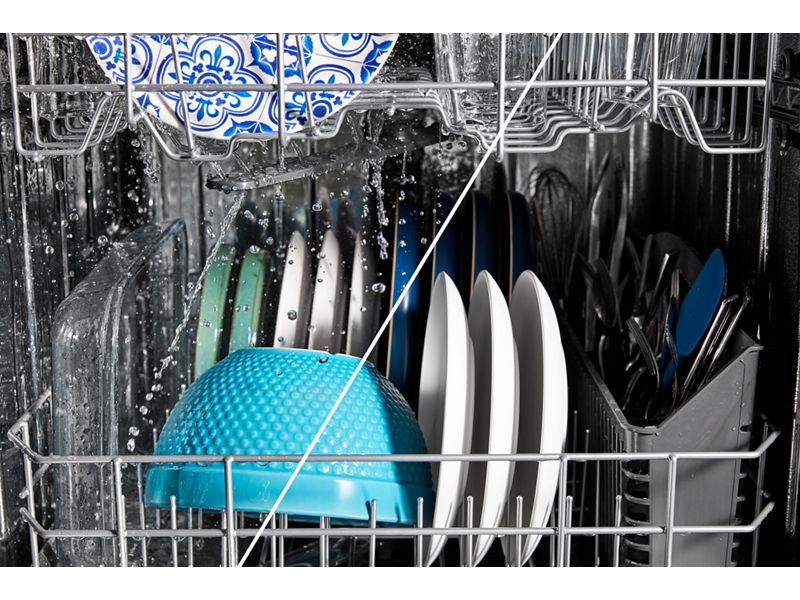 The PowerBlast® cycle scours away stubborn foods like egg yolk, peanut butter and even dried-on oatmeal. High-pressure jets, rotating spray arm, and increased water temperatures work together to clear food off dishes—so all you have to do is load them in.