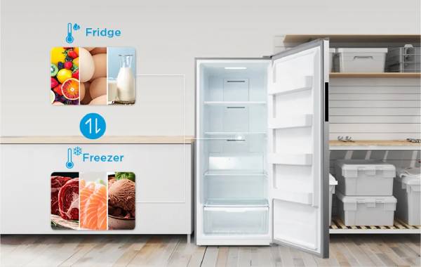 - Effortlessly switch between freezer and refrigerator modes, offering flexible storage for frozen goods, perishables, and beverages.