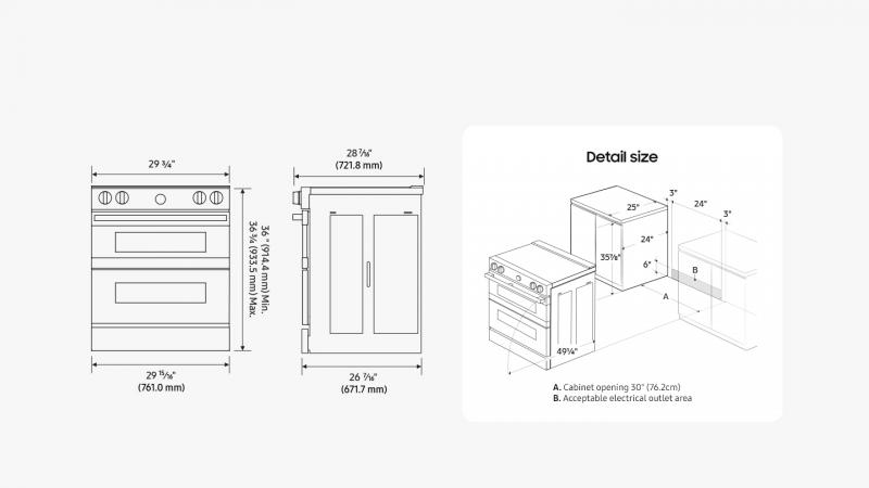 | Net Size (W x H x D) (inch/mm) | (29 15/16) x (36 ~ 36 3/4) x (28 7/16) |