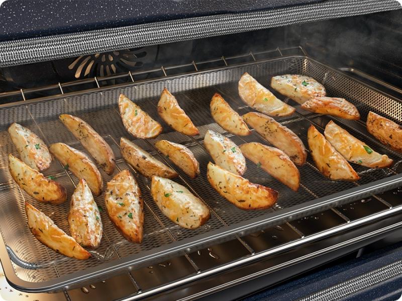 Cook food evenly without it being overcooked or drying out. The Air Sous Vide* system continually senses the temperatures inside the oven and maintains an even temperature for a long period. So everything is cooked thoroughly, wherever it is in the oven, and tastes deliciously tender and juicy.