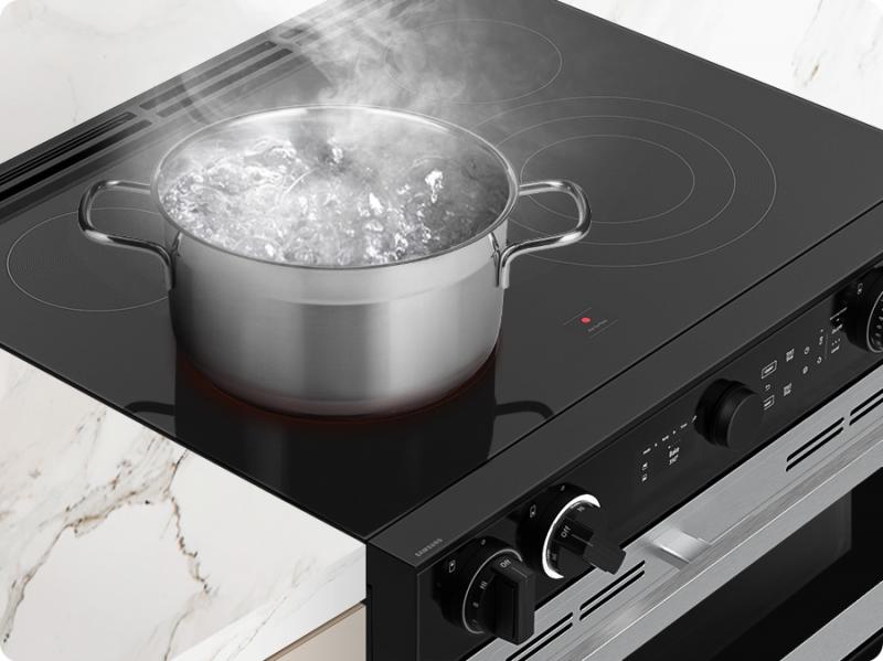 Cook dishes quickly and evenly using the powerful heat and precise control of the 3.6kW Express Boil Electric Cooktop. It can rapidly go to a high heat for searing meat, like steak, and boiling water in a flash. Or turn it down to a true simmer – ideal for melting chocolate or making sauces.