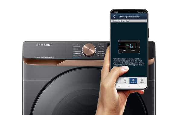 Easy troubleshooting from the convenience of your smartphone.* Smart Care interacts with your washer and dryer to perform an immediate diagnosis and offer quick solutions.