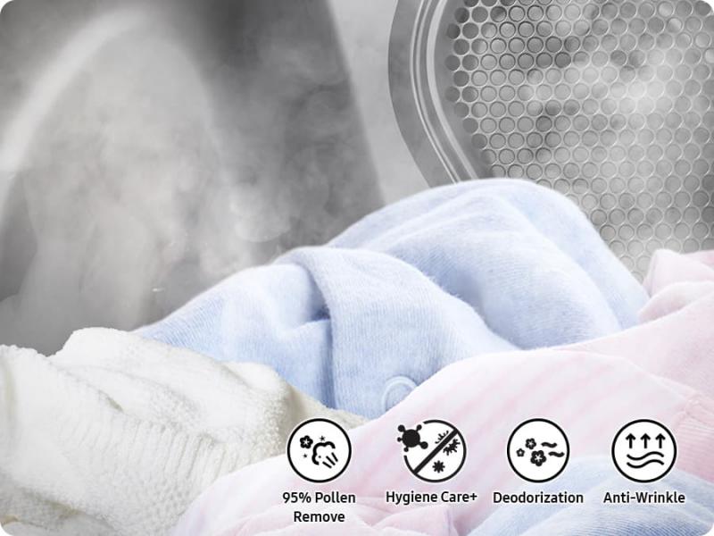 Our Steam Sanitize+ cycle removes up to 95% of pollen* from fabric, while Multi-Steam refreshes clothing and relaxes light wrinkles.