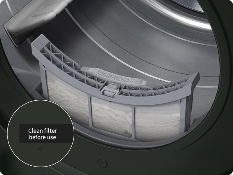 The control panel provides a helpful reminder to clean the filter to keep your dryer running smoothly.