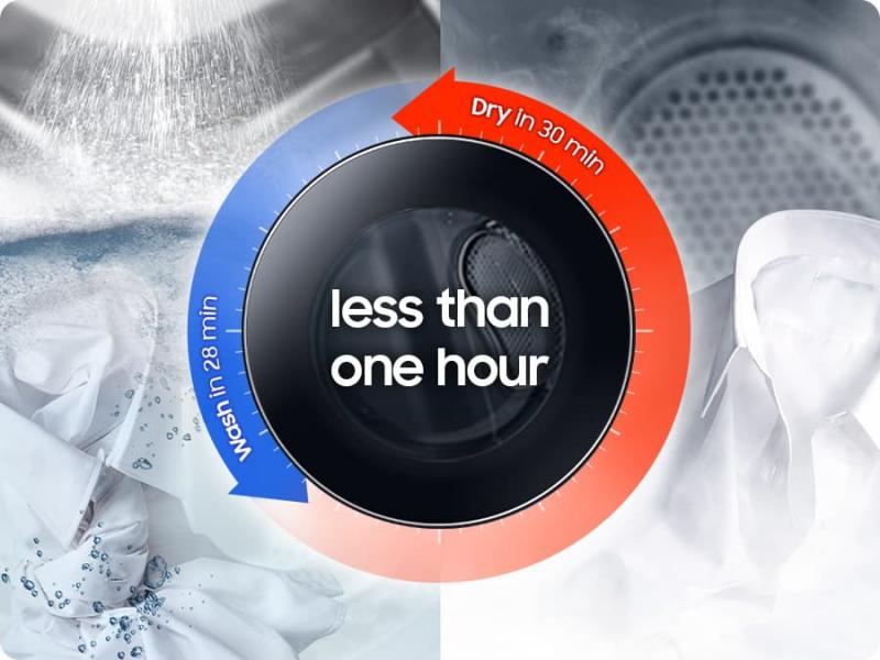 Wash and dry a full load in just 58 minutes* so garments can be washed thoroughly and dryed in just under an hour.