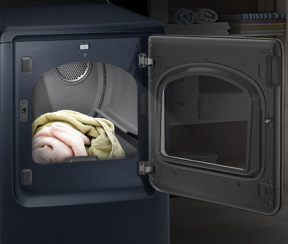 Choose the direction your dryer door opens to better suit your laundry room layout.