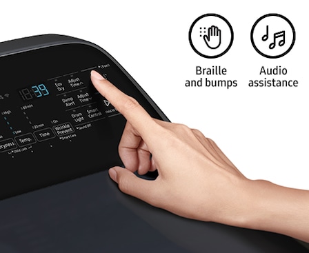 Aiding the visually and hearing impaired, your washer and dryer now features audio assistance, playing a different sound for each option, and braille right next to key control panel buttons.