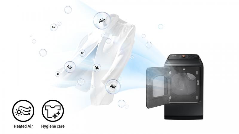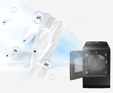 * Based on internal testing, using Samsung internal protocols, on an DOE 3lb load made of DOE standard fabric specimen polluted with 3 gases: Isovaleraldehyde (food), Methyl Mercaptan (feces) and Nonanal (body) after washing and the results provided to and interpreted by Intertek. Result may vary depending on the actual usage conditions.
