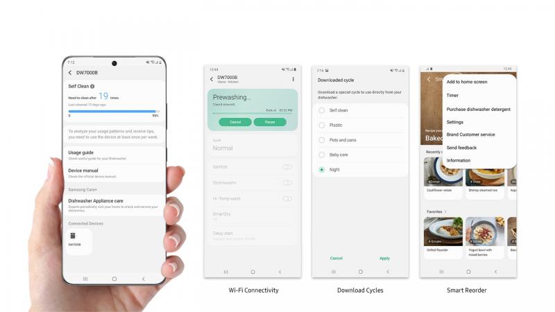 Customize your cleaning experience whenever you want. The Download Cycles option lets you choose from 5 additional specialist programs and download the one you want using the SmartThings App*. Simply select the “Night”, “Self Clean”, “Pots and Pans”, “Plastic”, “Baby Care” cycle.