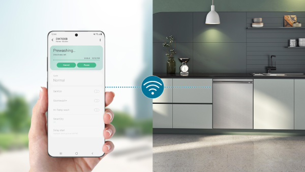 Clean your dishes wherever you are!Wi-Fi Connectivity lets you remotely monitor and control your dishwasher anytime or anywhere using the SmartThings APP.You can easily check its status,turn it on/off,get cycle suggestions,select programs and options and receive diagnostics information.