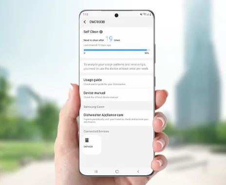 With the SmartThings App*you can remotely monitor and control the dishwasher on the smartphone.