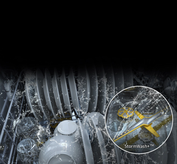 Clean heavily soiled pots, pans and dishes rapidly and thoroughly. The powerful new StormWash+™ system delivers a more intensive washing performance. An upgraded, circle-shaped spray jet blasts water from more angles and two washing arms help wash quickly, effectively and energy-efficiently.