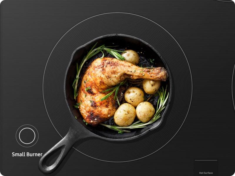 Cook dishes quickly on a 3.0kW Electric Cooktop. It enables fast and intensive cooking on a high heat that is ideal for sautéing and searing meat. Or you can boil water in a flash and cook food rapidly. It has 5 burners, including 2 dual ring burners, so you can easily prepare multiple dishes.