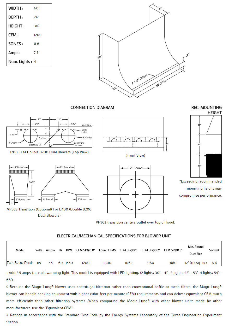 60" Vent-A-Hood Premier Magic Lung Professional Or Standard Wall Mounted Hood - DAH30460SS